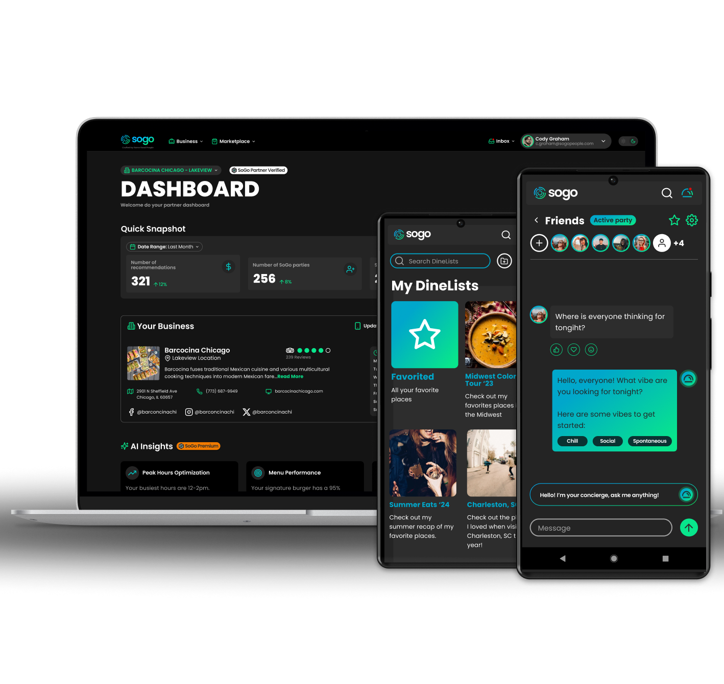 SoGo makes it simple with a smarter recommendation engine that matches you to the right spot. We factor in your preferences, dietary needs, timing, and real business data to serve up personalized picks that just make sense.